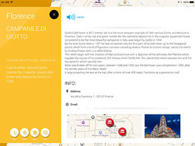 In essa è presente una descrizione vocale per la parte culturale di ogni città e la geolocalizzazione.